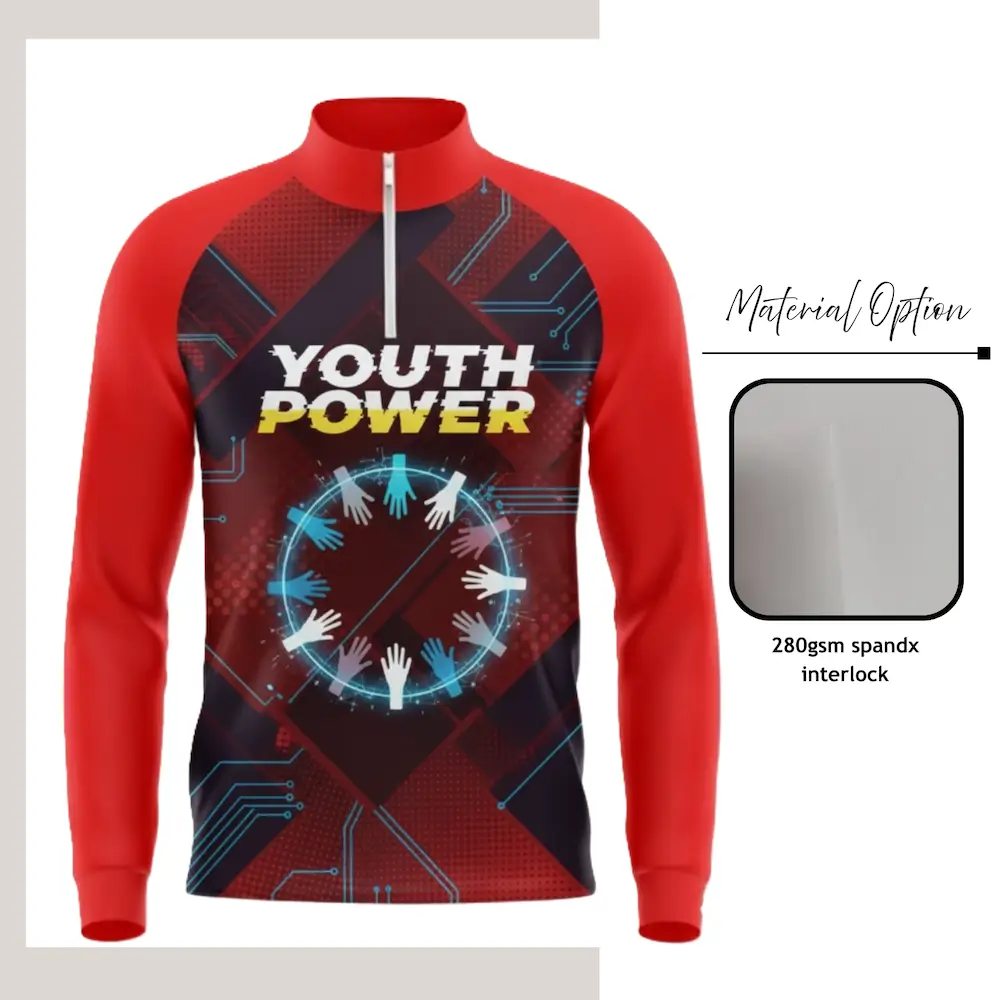 The NPS-APP-SWT-UK-QZ-002 quarter-zip sweatshirt delivers the perfect balance of durability and flexibility for active teams and organizations. Constructed from premium 280GSM stretch interlock fabric with 8% spandex, this mid-weight sweatshirt offers a substantial, smooth feel that holds its shape beautifully while providing exceptional four-way stretch for complete freedom of movement. The dense interlock construction provides excellent durability and warmth without excessive bulk, making it ideal for year-round wear. The sophisticated collar with quarter-zip closure adds a polished athletic touch, allowing for customizable ventilation and styling options. Available with your choice of white or black zipper, this sweatshirt coordinates seamlessly with any team color scheme. The smooth interlock surface provides an excellent canvas for full-edge sublimation, allowing your logos and artwork to display with vibrant, permanent color that becomes part of the fabric. The set-in long sleeves and regular fit ensure a clean, athletic silhouette suitable for both competition and casual settings.